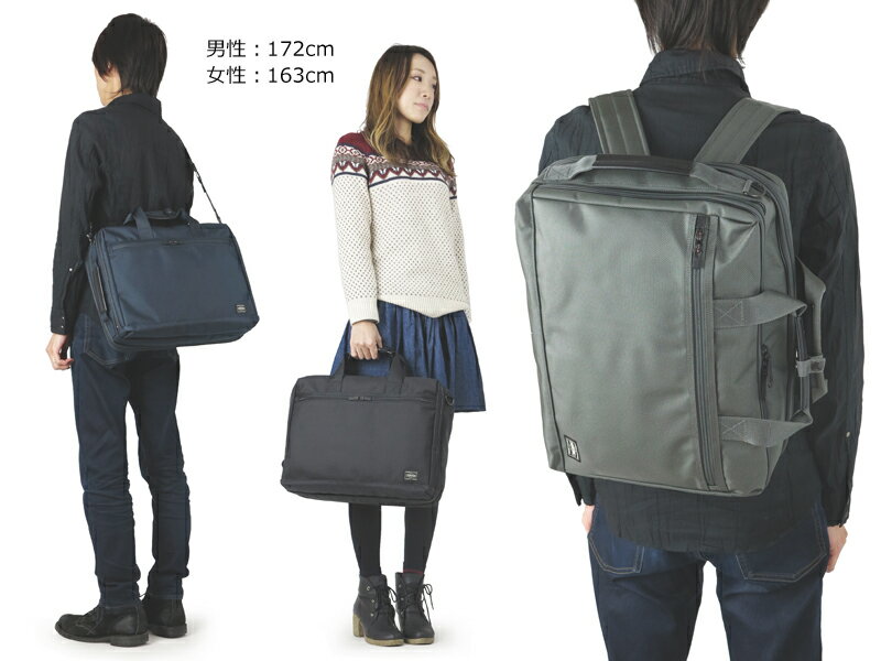 型によってはノートパソコンやiPadなどの電子機器が収納可能なポケットを装備したり背面にキャリーバー通しを設けたりと、シンプルなルックスながらもポーターならではの機能美でビジネスシーンを強力サポートしてくれます。