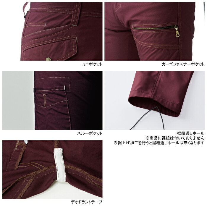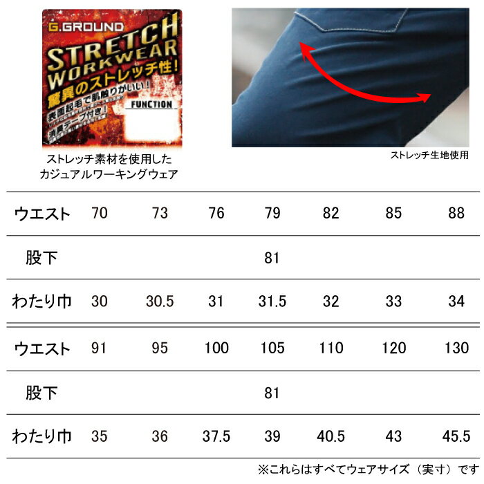 作業服 544891〜100105〜110120130他のサイズを選ぶ●●●●商品説明●関連商品※5443長袖ブルゾン※545長袖シャツ●秋冬用●素材:綿98% ポリウレタン2%、フロントファスナー/金属、釦/金属(ドット釦)●綿50%を超える素材、ストレッチ、消臭、ミニポケット、デオドラントテープ、スルーポケット、カーゴファスナーポケット、裾紐通しホール●サイズ:70(ウエスト/70、股下/81、わたり巾/30)、73(ウエスト/73、股下/81、わたり巾/30.5)、76(ウエスト/76、股下/81、わたり巾/31)、79(ウエスト/79、股下/81、わたり巾/31.5)、82(ウエスト/82、股下/81、わたり巾/32)、85(ウエスト/85、股下/81、わたり巾/33)、88(ウエスト/88、股下/81、わたり巾/34)、91(ウエスト/91、股下/81、わたり巾/35)、95(ウエスト/95、股下/81、わたり巾/36)、100(ウエスト/100、股下/81、わたり巾/37.5)、105(ウエスト/105、股下/81、わたり巾/39)、110(ウエスト/110、股下/81、わたり巾/40.5)、120(ウエスト/120、股下/81、わたり巾/43)、130(ウエスト/130、股下/81、わたり巾/45.5)●カラー:ネイビー、グレー、ボルドー商品仕様ストレッチ素材を使用したカジュアルワーキングウェア。